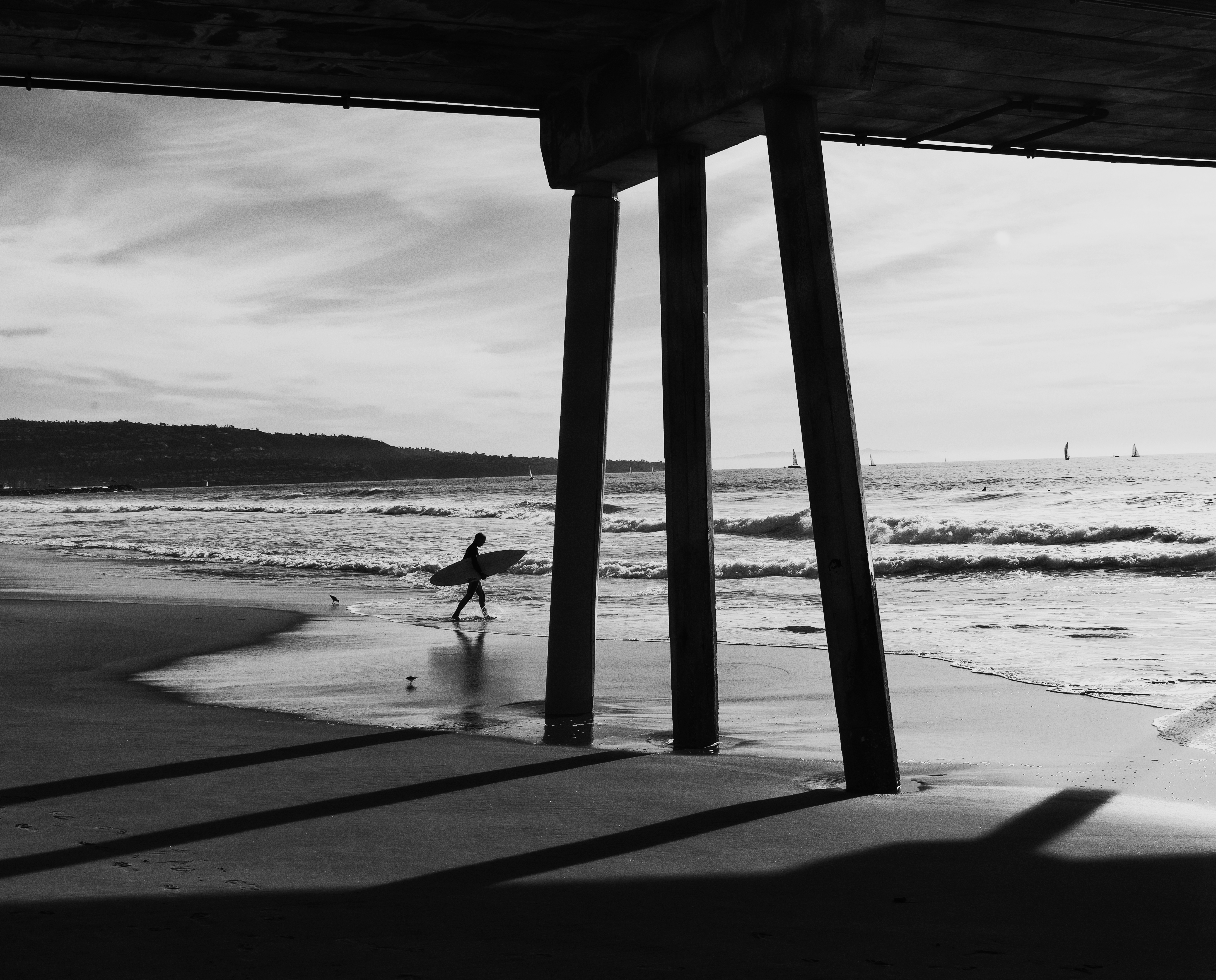 Hermosa Under Pier B&W 2 by Mike Hope